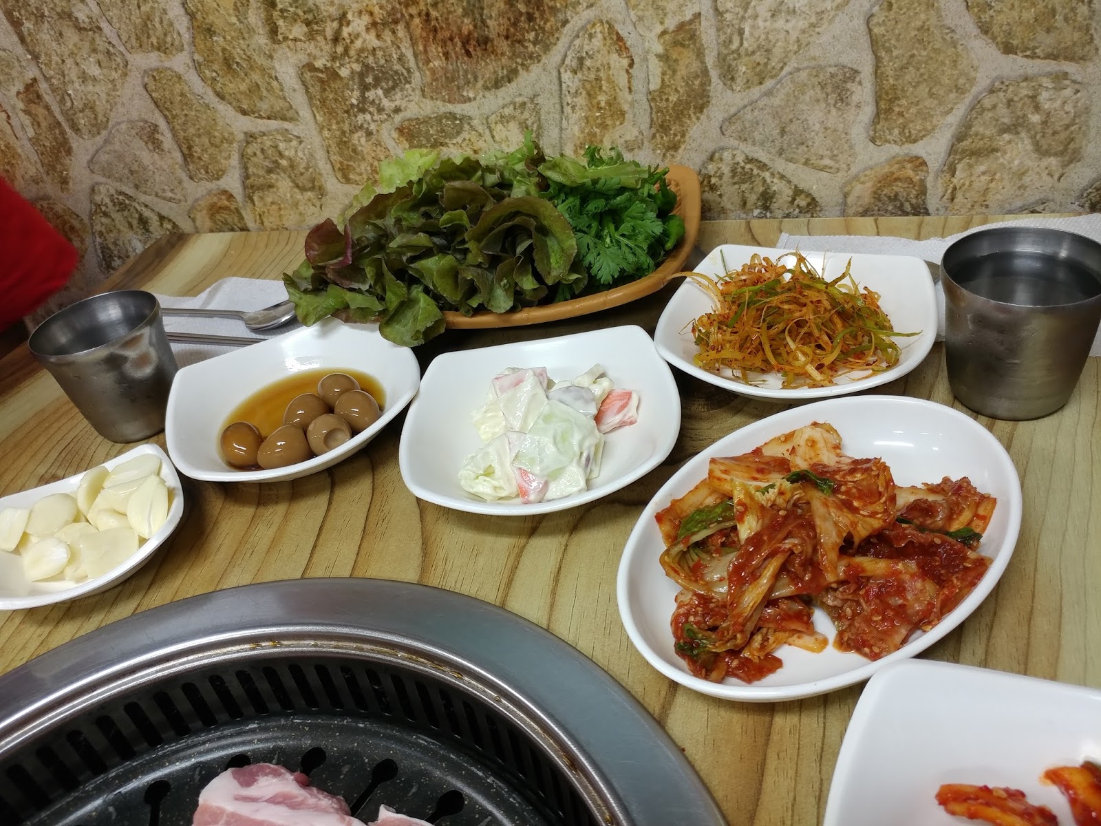 Alot of banchans and some are pretty delish! I liked the cucumber kimchi, quail eggs and the anchovies. Wanted to return the green chili but the ajumma insist we try it though we din't haha.